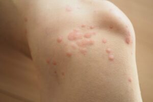 じんましんは、皮膚に赤みやかゆみを伴う膨疹(ぼうしん)が突然あらわれる疾患です。発症の原因は多岐にわたり、食べ物、薬、ストレス、気温変化などが関係することがあります。