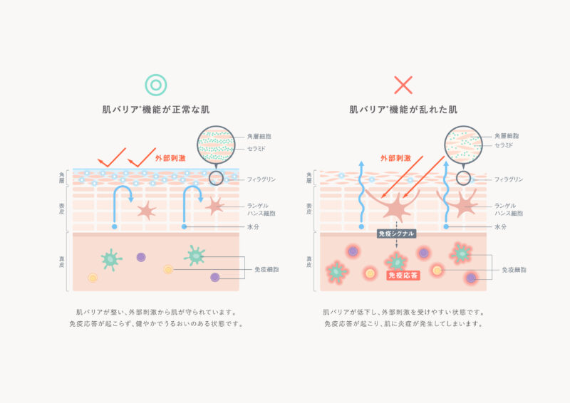 また、乾燥や皮膚疾患などによってバリア機能が低下した状態が続くのも、アレルギー症状を引き起こす原因として知られています。