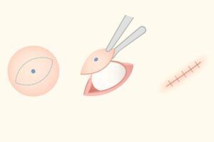 デルマパンチと呼ばれる専用の器具を用いて嚢腫の一部をくりぬき、内部の角質や皮脂を丁寧に除去しながら袋全体を摘出します。縫合の必要がない場合も多く、治療時間は5分から20分程度です。
